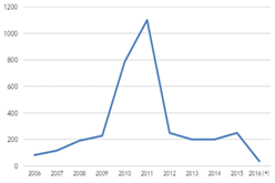 圖1全毬MOCVD機檯纍計安裝量 數據來源(yuan):咊訊理財客